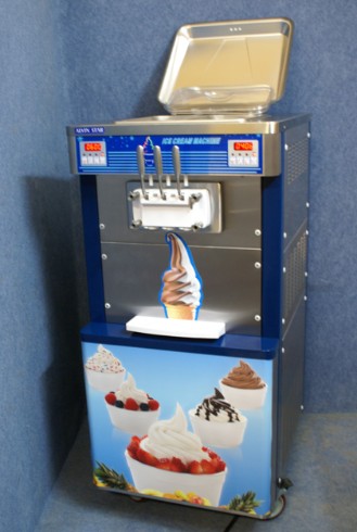 Die Softeismaschine hat Selbstreinigungsprogramm, 2 Schwellpumpen, 3 Kühlaggregaten und ist auch für Softeismischung FLÜSSIG und Softeispulver geeignet.
